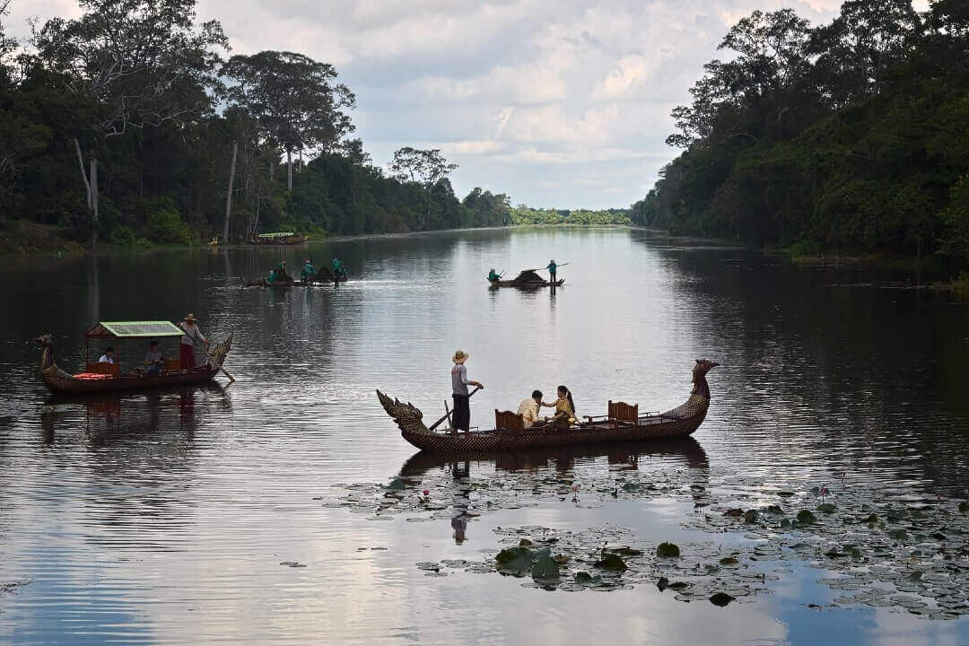 Un'imbarcazione tipica galleggia sul fiume in Cambogia. | Photo Credit: Strocchi per VisualHunt / CC BY-SA.
